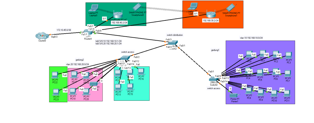 vlan 20 dengan IP 192.168.20.0/24 name : gedung2