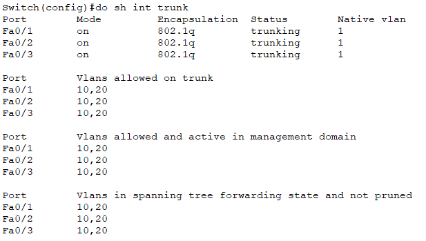 Switch(config-if-range)#switchport trunk allowed vlan10,20