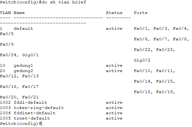 #sh vlan brief //cek vlan yang sudah dibuat
