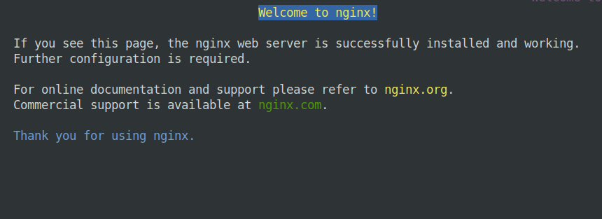 tes nginx dengan port 80 pada container, kita gunakan aplikasi lynx dengan perintah :[mars@docker ~]$ lynx http://172.17.0.4