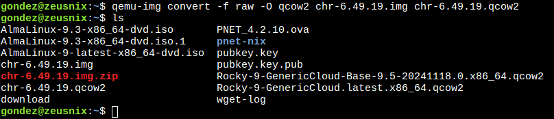 qemu-img convert -f raw -O qcow2 chr-6.49.19.img chr-6.49.19.qcow2