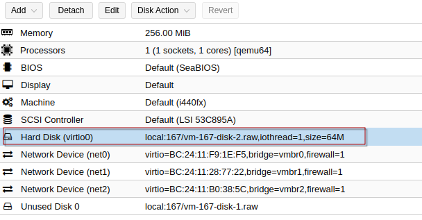 Image raw yang telah di mount akan muncul menjadi Hard Disk dengan port virtio0